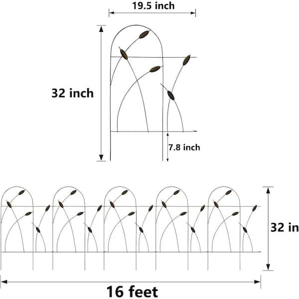 Metal Decorative 19.5 in. Wrought Iron Garden Fence Border No Dig Rustproof Landscape Fencing for Yard Black 10 Panels