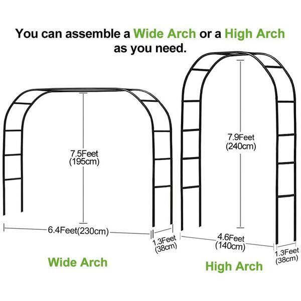 Metal Garden Pergola Arbor 7.5ft.W x6.4ft.H or 4.6ft.W x7.9ft.H Freely Assembled for Climbing Plants Wedding Party Decor