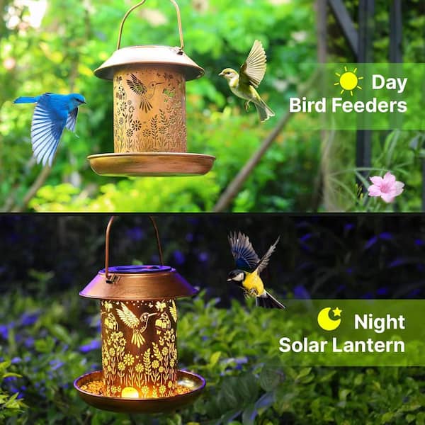 Multi-Colored Finish Metal Seed Feeder Solar Powered Hummingbird Lantern Hanging Tree Seed Feeder Waterproof (2-Pack)