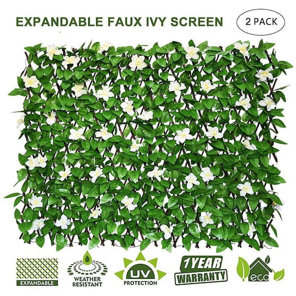 Outdoor Expandable Plastic Garden Fence Panel Privacy Screen-Single Sided Leaves in Green (2 Green-Flowers)