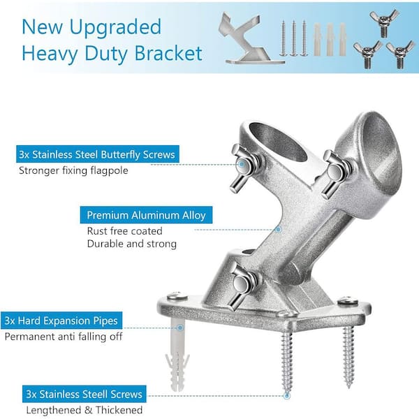 Outdoor Flag Pole Holder 1 in. Adjustable Aluminum Metal Flagpole Mount with Stainless Hardware Strong Rust Proof Silver