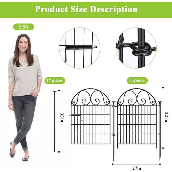Tall Garden Fence Animal Barrier with Gate 32 in. Height Metal Temporary Fencing 16-Panels Dogs and Yard 35 ft. Length