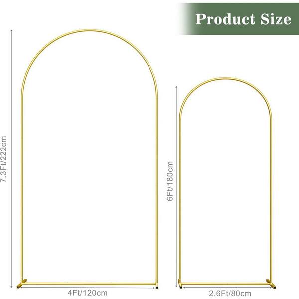 Wedding Arch Backdrop Stand Set of 2, Gold Metal Frame, Elegant Door Shape, Indoor Outdoor Party Decoration