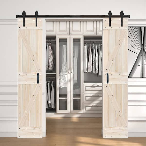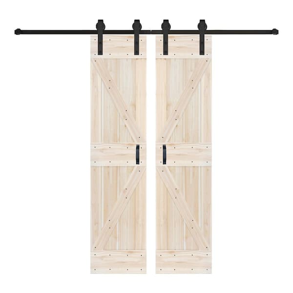 K Series 42 in. x 84 in. Unfinished DIY Solid Wood Double Sliding Barn Door with Hardware Kit