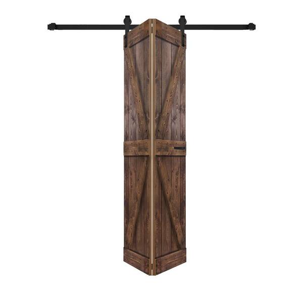 K Style 24in. x 80in .(12in. x 80 in. x 2 Panels)Dark Walnut Solid Core Wood Bi-fold Door With Hardware -Assembly Needed