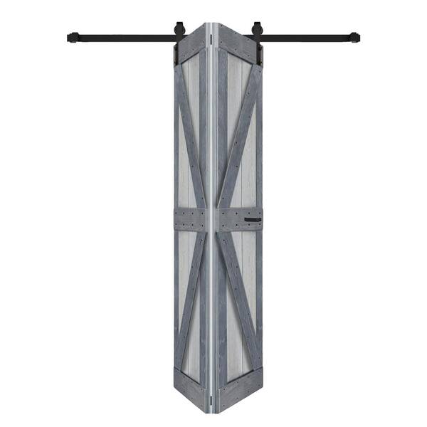 K Style 30 in. x 84 in. French Gray/Dark Gray Solid Core Wood Bi-fold Door with Hardware Kit -Assembly Needed