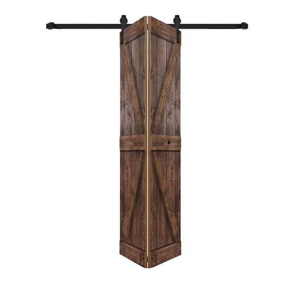 K Style 30in. x 84in.(15 in. x 84 in. x 2-Panels)Dark Walnut Solid Wood Bi-Fold Door With Hardware-Assembly Needed