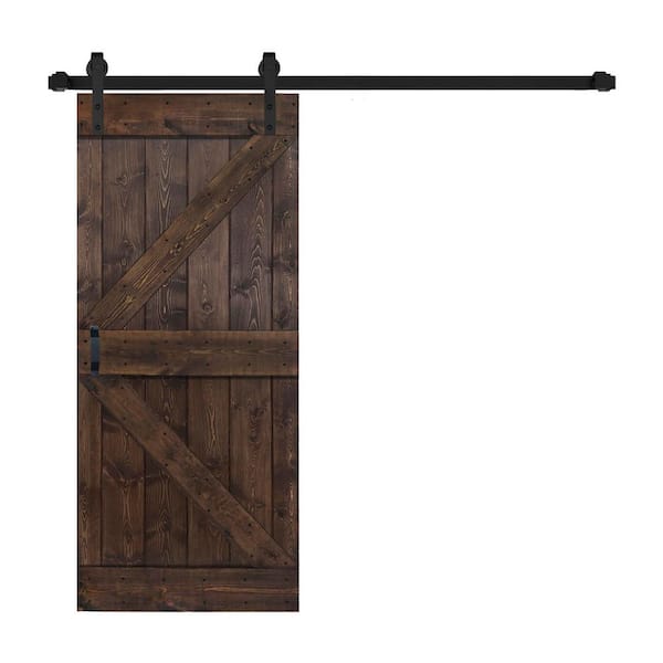 K-Style 36 in. x 84 in. Kona Coffee Finished Soild Wood Sliding Barn Door with Hardware Kit - Assembly Needed
