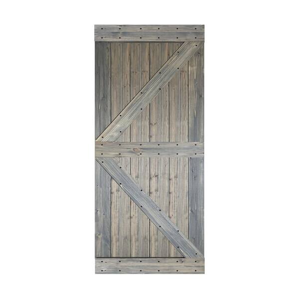 K Style 38 in. x 84 in. Aged Bareel Finished Solid Wood Sliding Barn Door Slab - Hardware Kit Not Included