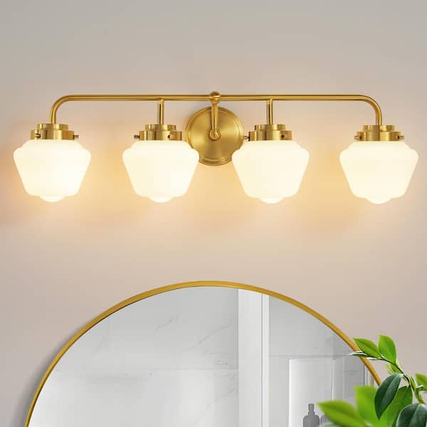 31 in. 4-Light Dimmable Wall Sconce Gold Vanity Light With Globe Glass Shade For Bathroom Light Fixtures Over Mirror