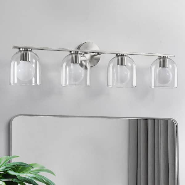 32 in. 4-Light Brushed Nickel Vanity Light with Clear Glass Shade Farmhouse Wall Sconce For Bathroom Light Fixtures