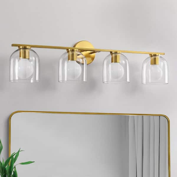 32 in. 4-Light Modern Gold Vanity Light with Clear Glass Shade Farmhouse Wall Sconce For Bathroom Light Fixtures