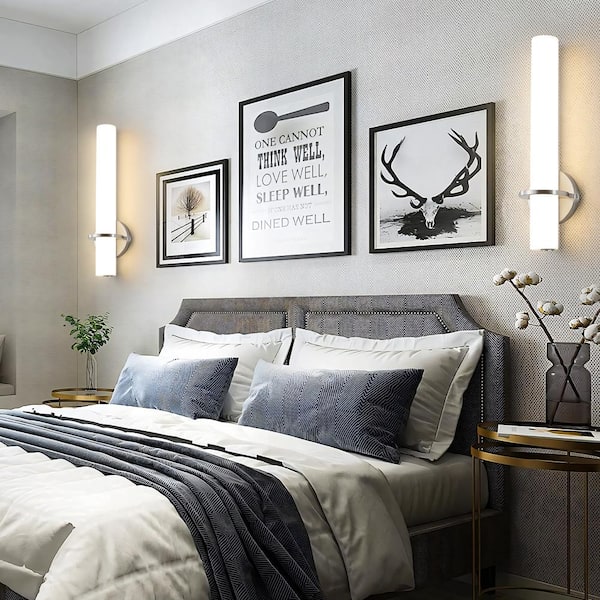 Modern 2-Light Brushed Nickel Dimmable LED Wall Sconce With Acrylic Shade 18W 3000K Vanity Light Fixtures (Set of 2)
