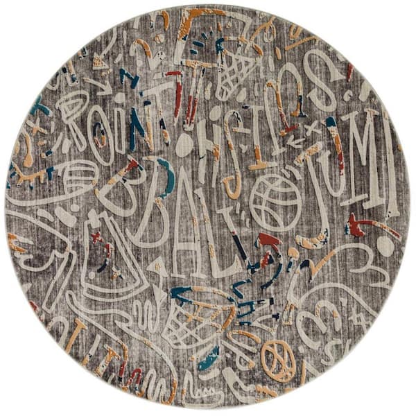 Sportsglyphs 6' Round Gray Abstract Washable Area Rug