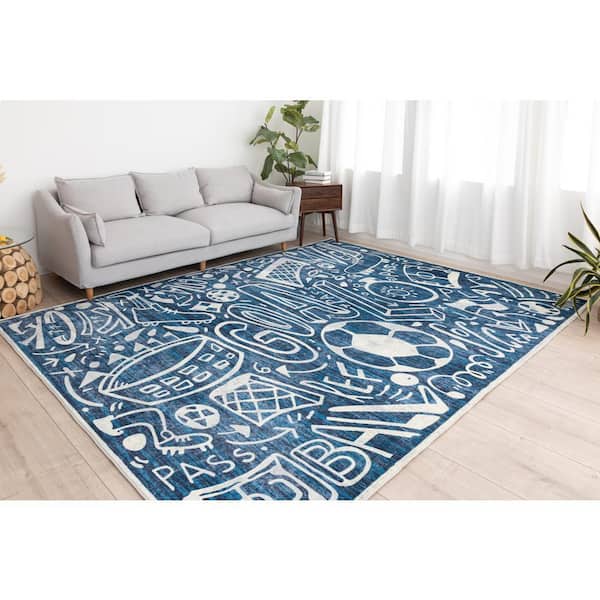 Sportsglyphs Blue 6 ft. Round Abstract Area Rug
