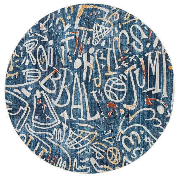 Sportsglyphs Blue 6 ft. Round Abstract Area Rug
