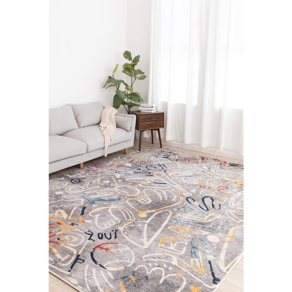 Sportsglyphs Multi-Colored 6 ft. Round Abstract Area Rug