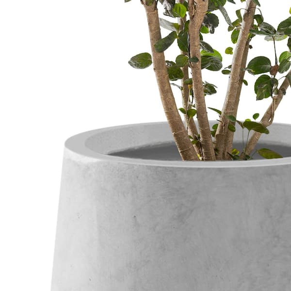 10.63 in. x 13.78 in. Round Natural Lightweight Concrete and Weather Resistant Fiberglass Planter w/Drainage Hole