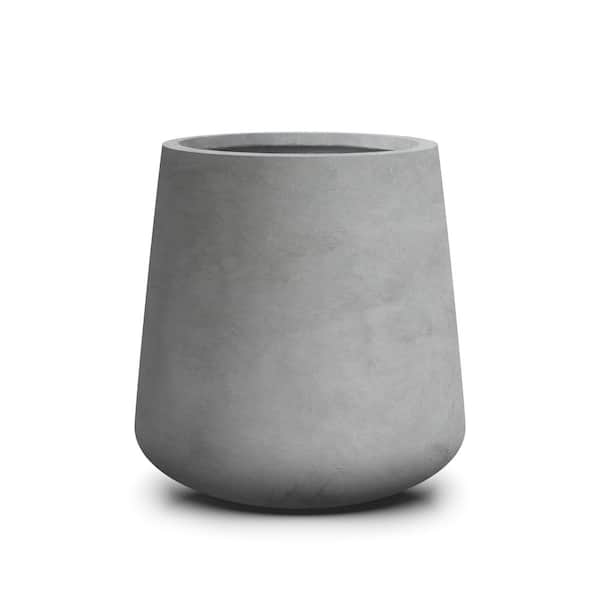 12.2 in. W Round Lightweight Natural Concrete Metal Indoor Outdoor Planter Pot with Drainage Hole and Rubber Plug