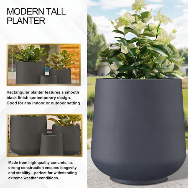 15.3 in. 11.6 in. and 8.2 in. W Weathered Concrete Round Planters (Set of 3), Lightweight, Seamless with Drainage Hole