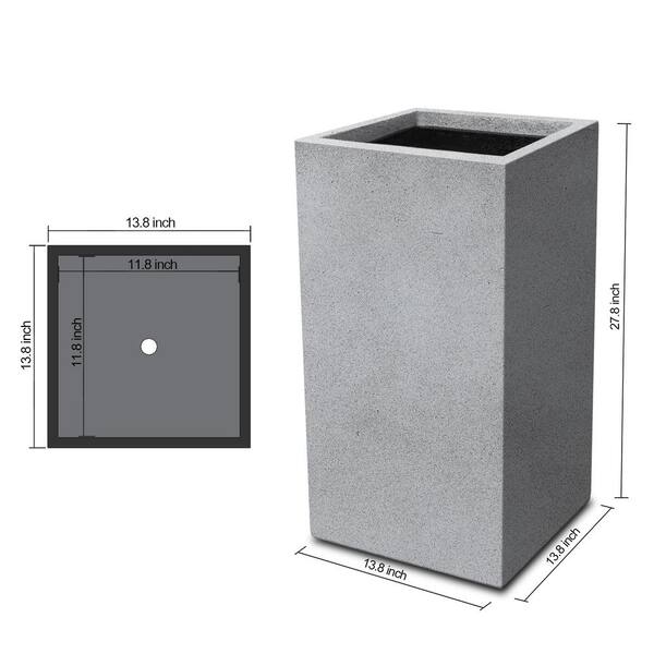 28 in. H Square Concrete Tall Planter, Large Outdoor Indoor Planter Pots Lightweight with Drainage Holes