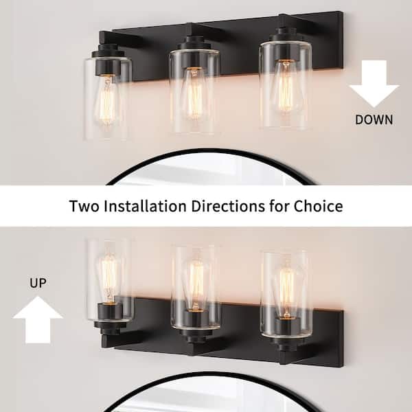 20.5 in. 3-Light Black Vanity Light with Clear Glass Shade