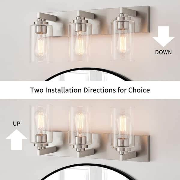 20.5 in. 3-Light Brushed Nickel Vanity Light with Clear Glass Shade