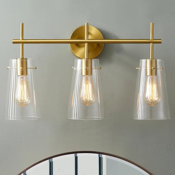 21.75 in. 3-Light Antique Brass Vanity Light with Clear Glass Shade