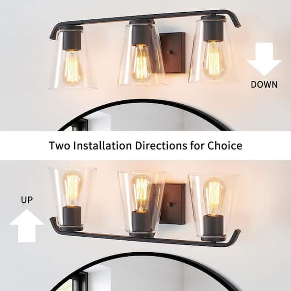 22.25 in. 3-Light Painted Black Vanity Light with Clear Glass Shade