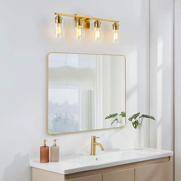 30 in. 4-Light Antique Brass Vanity Light with Clear Glass Shades