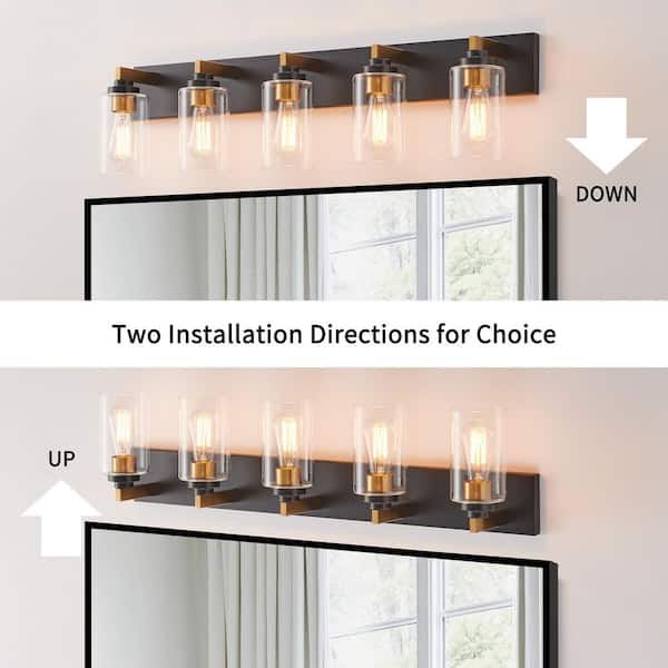 36.25 in. 5-Light Black and Gold Vanity Light with Clear Glass Shade