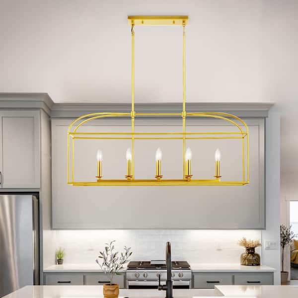 40 in. 8-Light Gold Caged Kitchen Island Pendant Chandelier