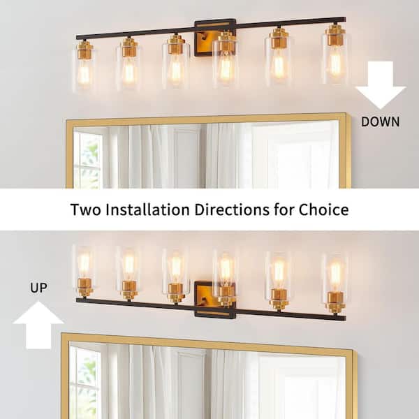 43.2 in. 6-Light Black and Brass Vanity Light with Clear Glass Shades
