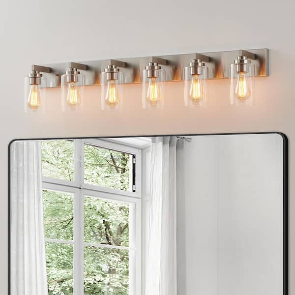 44 in. 6-Light Brushed Nickel Vanity Light with Clear Glass Shades