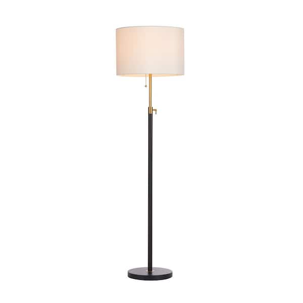 65 in. Adjustable Black and Brass Metal Floor Lamp with Pull Chain Switch
