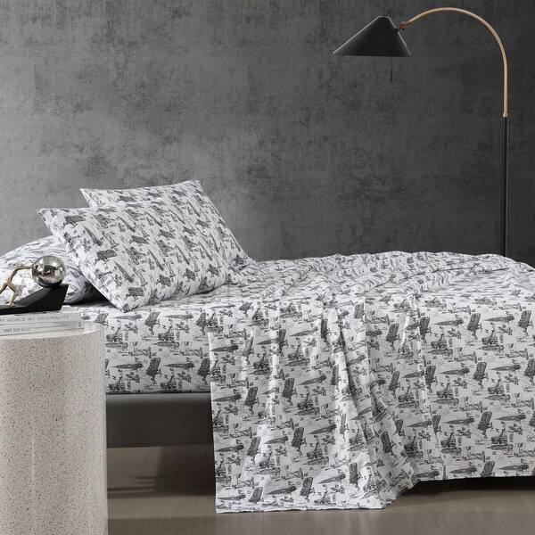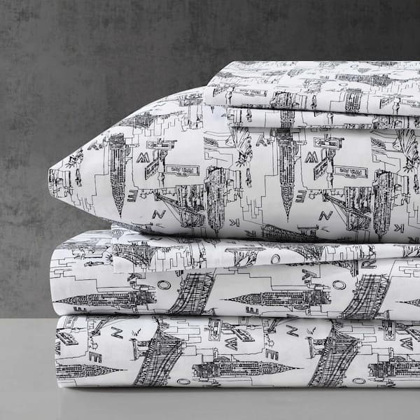 NYC Landmarks 6-Piece Soft Black/White Microfiber Full Sheet Set