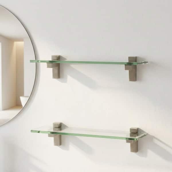 2 Pack 16 in. W x 3.5 in. H x 5 in. D Bathroom Aluminum Rectangular Tempered Glass Shelf in Brushed Nickel