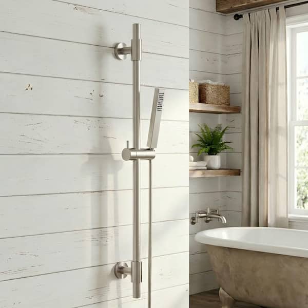 30 in. Wall Mount Shower Slide Bar with Adjustable Handheld Shower Head Holder in Brushed Finish