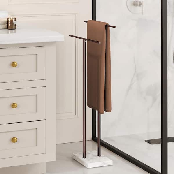 Bathroom Freestanding Towel Rack 2-Tier 33 in. H with Marble Base 18/8 Stainless Steel Brushed Bronze