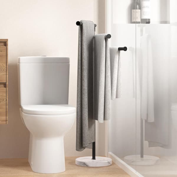 Freestanding Towel Racks for Bathroom with Weighted Marble Base 40 in. 3 Swivel Bars in Matte Black