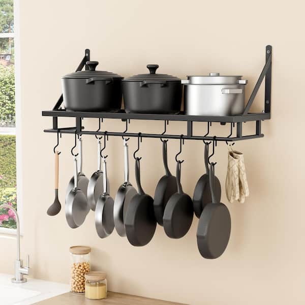 Matte Black 30 in. Wall Mount Rectangular Pot Rack for Kitchen with 12 Hooks