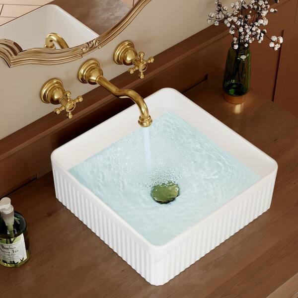Modern 14.8 in. Square Vessel Bathroom Sink Above Counter in White Ceramic