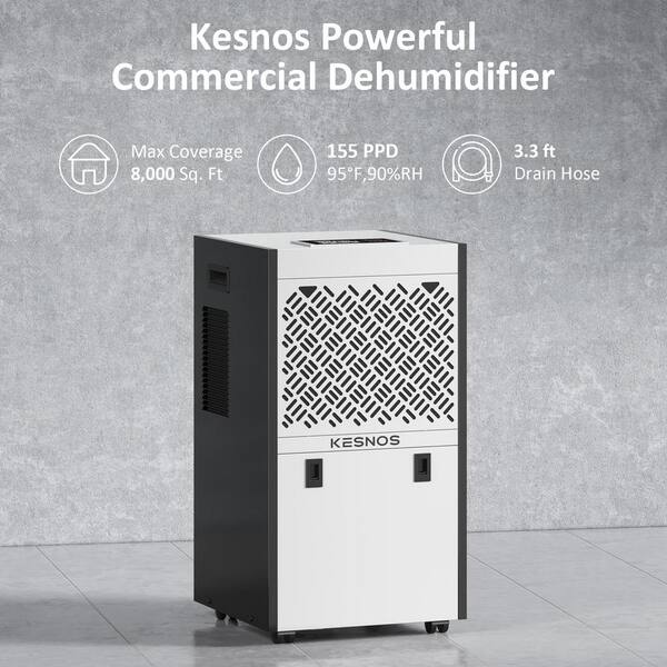 155-Pint Industrial Dehumidifier with Smart Dry for Bedrooms, Basements or Humid Rooms up to 8,000 sq. ft. in White.