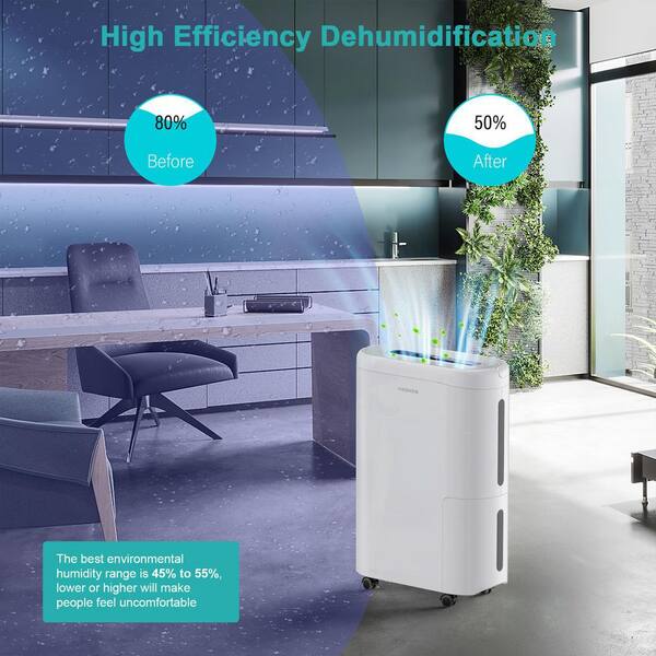 60-Pint . Portable Home Dehumidifier For 4,500 Sq. Ft. with Drain Hose and Water Tank Timer with Wheels