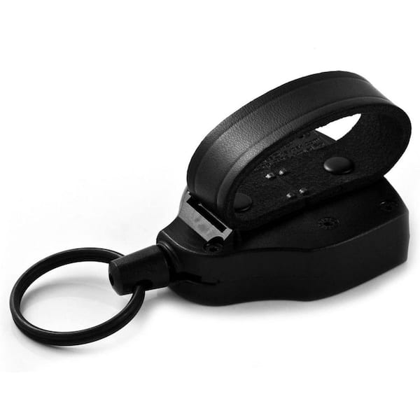SUPER48 HD Locking Heavy-Duty Retractable Keychain Leather Duty Belt Loop, Oversized Split Ring, Black