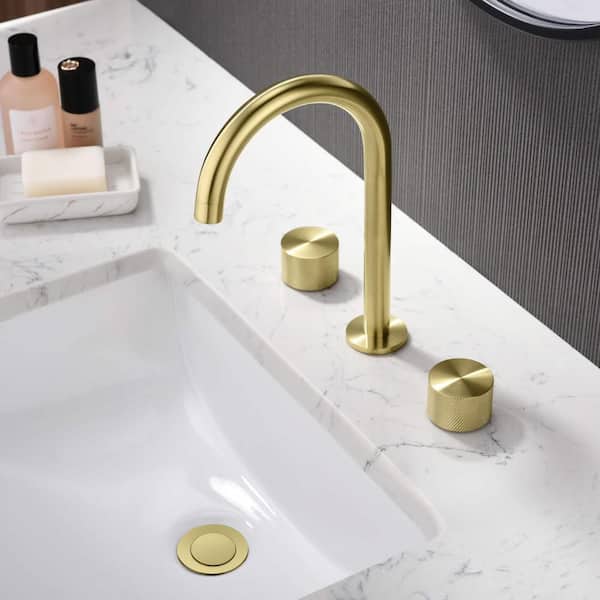 8 in. Widespread 2-Handle Bathroom Sink Faucet with Supply Lines and Adjustable Flow Rate in Brushed Gold (1-Pack)