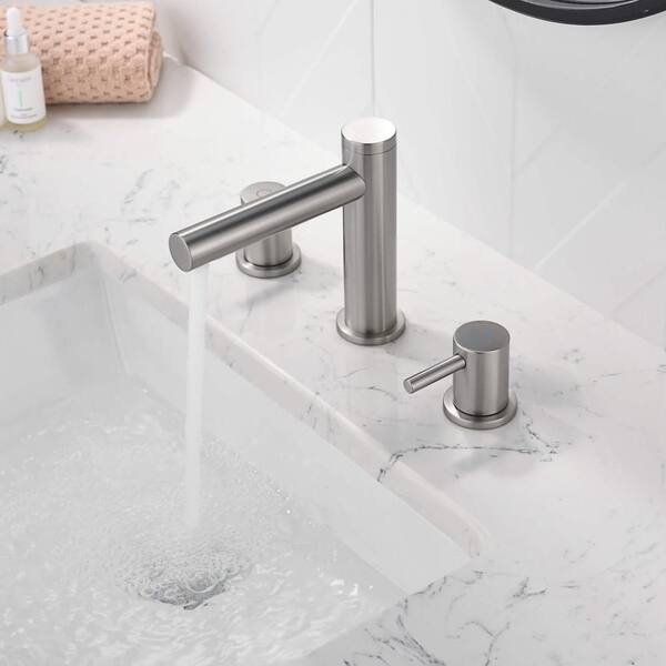8 in. Widespread 2-Handle Bathroom Sink Faucet with Supply Lines and Adjustable Flow Rate in Brushed Nickel (1-Pack)