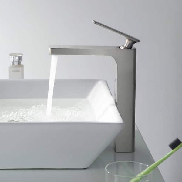 Single Handle Lever Handle Single Hole Bathroom Sink Faucet with Supply Lines and Adjustable Flow Rate in Brushed Nickel