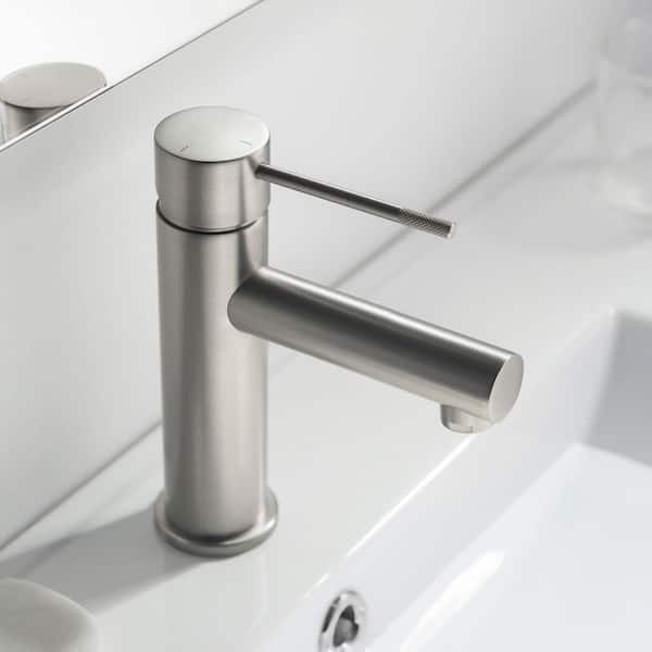 Single Handle Lever Handle Single Hole Bathroom Sink Faucet with Supply Lines and Pop-Up Drain in Brushed Nickel