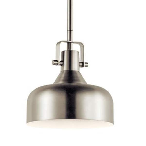 7 in. 1-Light Integrated LED Brushed Nickel Transitional Shaded Kitchen Mini Pendant Hanging Light with Metal Shade
